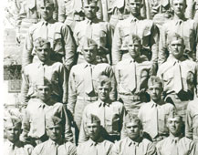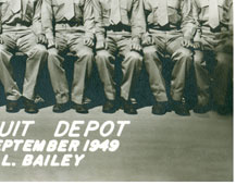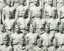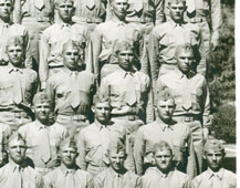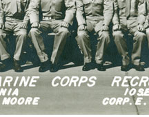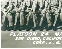Platoon 24; Marine Corps Recruit Depot; San Diego, California Not all of the names of this group's graduates/classmates are available, but the North High names are shown. Left to right from bottom up (rollovers created to identify the individuals listed below): Row 3; Dick Stalcup#5; Bob Gates#7 Row 5; Bob Long#2; Deane Nelsen#3; Ted Hatfield#4; Ron Hartman#6. (Ron Hartman is from Cedar Rapids, IA) |