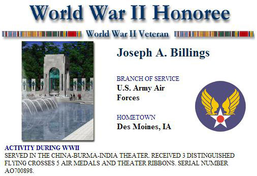 Joseph Andrew Billings's 1939 class page is: http://ndmhs.com/pages/yearclass1939(2005.66).html. |