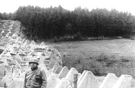 Line Tank traps were also built for miles along the Siegfried Line and were known as "dragon's teeth" or "pimples" (in German Höcker, "humps") because of their shape. These blocks of reinforced concrete stand in several rows on a single foundation. There are two typical sorts of barrier: Type 1938 with four teeth getting higher toward the back, and Type 1939 with five such teeth. Many other irregular lines of teeth were also built. Another design of tank obstacle was made by welding together several bars of steel in such a way that any tank rolling over it would be penetrated in its weak bottom armor. If the lie of the land allowed it, water-filled ditches were dug instead of tank traps. An example of this kind of defence are those north of Aachen near Geilenkirchen. **Nordhausen Concentration Camp Liberation Nordhausen was a sub-camp of the concentration camp Dora-Mittelbau. This camp was created by the SS for prisoners too weak or too ill to work in the tunnels of Dora on the fabrication of the German V1 and V2 rockets. Following the Nazi terminology, Nordhausen was a "Vernichtungslager", an extermination camp for ill prisoners. The extermination methods used by the SS were not the same as the ones used in the great extermination camps: there was no gas chamber but, in Nordhausen, the prisoners died by starvation and total lack of medical care. The conditions of life in Nordhausen were so terrible that the few survivors often said that "If Dora was the hell of Buchenwald, Nordhausen was the hell of Dora"... The camp of Nordhausen was a huge complex of installations and hangers made of concrete. There were absolutly no sanitary installations and the inmates had to stay in the hangars nights and days, without any food until they died. Even for a man in healthy condition, this could lead very fast to extreme weakness. For prisoners who were already exhausted and ill, these cruel conditions of life meant quick although miserable death. On April 3th, 1945, Nordhausen was bombed by the US