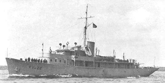 Sound Laboratory; New London, CT The Navy Underwater Sound Laboratory had its origins in the establishment of two sonar research facilities in 1941; an office of Columbia University's Division of War Research at Fort Trumbull in New London, Connecticut, and the Harvard Underwater Sound Laboratory in Cambridge, Massachusetts. The Connecticut office concentrated on passive sonar systems and devices while the Massachusetts office developed active systems and devices. Significant accomplishments during World War II included the development of greatly improved surface ship and submarine sonar systems, acoustic homing torpedoes, sonobuoys, and acoustic mines. This work contributed greatly to the success against U-boats in the Battle of the Atlantic and the near-total destruction of the Imperial Japanese Navy and merchant fleets in the Pacific War. Also in 1941 the United States Navy established the Underwater Sound Reference Laboratory in Orlando, Florida. The lab was built on the archeological site of Fort Gatlin on the shore of Lake Gem Mary because the sinkhole-formed lake is very deep. The Orlando lab closed in 1997 and the building was turned over to civil administration thereafter. By 1946, the sonar efforts of the Harvard and Columbia labs were combined at Fort Trumbull as the Navy Underwater Sound Laboratory under the Navy's Bureau of Ships, now Naval Sea Systems Command (NAVSEA). Research intensified during the Cold War, which was as much a technology race with the Soviets as it was an arms race. The Sound Lab's efforts were key to the further development of both submarine and anti-submarine warfare. In 1970 the Sound Lab was organizationally combined with the Naval Underwater Weapons Research and Engineering Station at Newport, Rhode Island to form the Naval Underwater Systems Center. In 1996 the facility at Fort Trumbull was closed and activities were merged at Newport. USS Cymophane; PYc-26; Patrol Yacht WWII: USS Cymophane (PYc-26) was an Cymophane-class patrol yacht acquired by the United States Navy early during World War II. She was used for patrol, escort, anti-submarine, and rescue operations along coastal waters. Cymophane was built in 1926 as Sea Forth by Newport News Shipbuilding and Dry Dock Co., Newport News, Virginia; acquired by the Navy on 2 March 1942; and commissioned on 6 August 1942, Lieutenant R. M. Hull, USNR, in command. Reassigned to the 5th Naval District, Cymophane arrived at Norfolk, Virginia on 21 November 1942. She served in anti-submarine patrol, convoy escort duty along the U.S. East Coast, and rescue operations until 6 August 1944, when she proceeded to Philadelphia Navy Yard, where she was decommissioned on 25 August. After overhaul, she was placed in service on 21 September, and on 2 October departed for New London, Connecticut, arriving on the 4th. Attached to the Underwater Sound Laboratory she alternated experimental work with submarine training until 30 April 1946. |