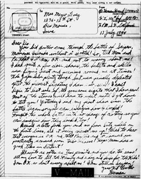 07/31/44: V-Mail letter written to sister, Mrs. Meyer Levey
