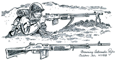 California The Battalion reactivated 1 October 1949 at Camp Pendleton, California, as the 1st Battalion, 5th Marines, 1st Marine Division, Fleet Marine Force. It was redesignated 7 July 1950 as the 1st Battalion, 5th Marines, 1st Provisional Marine Brigade, Fleet Marine Force. It deployed during August 1950 to Korea , and was redesignated 13 September 1950 as the 1st Battalion, 5th Marines, 1st Marine Division, Fleet Marine Force. the unit participated in the Korean War Operating from Pusan Perimeter, Inchon-Seoul, Chosin Reservoir, East Central Front, and Western Front. It participated in the defense of the Korean Demilitarized Zone from July 1953 to February 1955. The Battalion relocated during March 1955 to Camp Pendleton, California. **USS General George M. Randall (AP-115) Korean War As an MSTS ship, USS General George M. Randall made scheduled runs between the West coast of the United States and the Orient until fighting erupted in Korea in the summer of 1950. She participated in the amphibious assault at Inchon which routed the North Korean Army and forced Communist evacuation of South Korea. After hordes of Chinese Communist troops poured into Korea and trapped American forces, she served in the evacuation of Hungnam, which saved the embattled G.I.'s enabling them to return to the fight. She moored at New York, New York, on 26 May 1951, and made four voyages from New York to Bremerhaven and Southampton before returning to the Pacific. On 11 March 1951, General George M. Randall departed Yokohama, Japan, with the bodies of 52 men, the first Korean War dead to be returned to the United States, including Major General Bryant E. Moore, who had commanded the IX Corps. Armed Services honor guards were in attendance at the departure, as was an Army Band, and was heavily covered by the press. The ship arrived at San Francisco, also carrying 1500 officers and men of the 1st Marine Division being rotated home for 30 day leave. She then returned to Yokohama on 24 October. ***1st Marine Division(From the 1st Marine Division Presidential Unit Citation Award) The President of the United States takes pleasure in presenting The Presidential Unit Citation to the First Marine Division Reinforced for services as set forth in the following citation: "For extraordinary heroism in action against the enemy aggressor forces in Korea during the periods 21 to 26 April, 16 May to 30 June, and 11 to 25 September, 1951. Spearheading the first counteroffensive in the spring of 1951, the First Marine Division, Reinforced, engaged the enemy in the mountainous center of Korea in a brilliant series of actions unparalleled in the history of the Marine Corps, destroying and routing hostile forces with an unrelenting drive of seventy miles north from Wonju. During the period 21 to 26 April, the full force of the enemy counteroffensive was met by the Division, north of the Hwachon Reservoir. Although major units flanking The Marine Division were destroyed or driven back by the force of this attack, the Division held firm against the attackers, repelling the onslaught from three directions and preventing the encirclement of the key center of the lines. Following a rapid regrouping of friendly forces in close contact with the enemy, the First Marine Division, Reinforced, was committed into the flanks of the massive enemy penetration and, from 16 May to 30 June, was locked in violent and crucial battle which resulted in the enemy being driven back to the north with disastrous losses to his forces in the number of killed, wounded, and captured. Carrying out a series of devastating assaults, the Division succeeded in reducing the enemy's main fortified complex dominating the 38th Parallel." (From the 1st Marine Division Presidential Unit Citation Award) The President of the Republic of Korea takes profound pleasure in citing for outstanding and superior performance of duty during the period 26 October to 27 July 1953 the First United States Marine Division Reinforced for the award of President Unit Citation: "Landing at Wonsan on 26 October 1950 the First United States Marine Division (Reinforced) advanced to Yudam-ni where they engaged the Chinese Communist Forces. The heroic and courageous fighting of the First United States Marine Division (Reinforced), which was outnumbered but never outfought by the Chinese Communist Forces; coupled with its fight against the terrible winter weather in this return to Hungnam, has added another glorious page to the brilliant history of the United States Marines. After regrouping and retraining, the First United States Marine Division (Reinforced) rejoined the United Nations Forces and began the attack to the north which drove the aggressors relentlessly before them. The enemy spring offensive during April 1951 which threatened to nullify the recent United Nations gains was successfully repulsed by the First Marine Division (Reinforced) and when other Republic of Korea Forces were heavily pressed and fighting for survival the timely offensive by this Division gave heart to the people of Korea." ****Browning Automatic Rifle (BAR) WWI saw the first use of automatic weapons on a large scale. The Model 1918 Browning Automatic Rifle, known as the BAR, was created by arms designer John Browning to be a light automatic weapon which could be fired from the shoulder or hip. The weapon saw service with the American forces during the last stages of WWI, where it provided "walking fire" for attacks on enemy positions. It fired a standard .30 caliber rifle cartridge that was valued for its range and penetrating power. Between the World Wars, several variations on the basic design were made, including the addition of a folding bipod. The BAR was used extensively in WWII where it became an essential weapon in the American rifle squad. During the Korean War, the BAR again saw active service in all major campaigns. Its accurate automatic fire took a deadly toll on the enemy. |