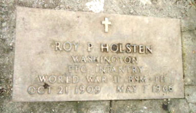 Will research to see if Roy Philip Holsten graduated from Issaquah High School around 1928 or 1929. Records indicate he attended high school for three years. His service number was 39171406. Roy''s next of kin was listed as his sister, Mrs.Verna Racca, 6802 Portland Avenue, Tacoma, WA. |