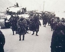 Division in Chosin Reservoir The Battle of Chosin Reservoir, also known as the Chosin Reservoir Campaign or the Changjin Lake Campaign (simplified Chinese: pinyin: Cháng Jin Hu Zhàn Yì), was a decisive battle in the Korean War. Shortly after the People's Republic of China entered the conflict, the People's Volunteer Army 9th Army infiltrated the northeastern part of North Korea and surprised the US X Corps at the Chosin Reservoir area. A brutal seventeen day battle in freezing weather soon followed. In the period between 27 November and 13 December 1950, 30,000 United Nations (UN) troops (nicknamed "The Chosin Few") under the command of Major General Edward Almond were encircled by approximately 60,000. Chinese troops under the command of Song Shi-Lun. Although Chinese troops managed to surround and outnumber the UN forces, the UN forces broke out of the encirclement while inflicting crippling losses on the Chinese. The evacuation of the X Corps from the port of Hungnam marked the complete withdrawal of UN troops from North Korea. Chosin Reservoir is a man-made lake located in the northeast of the Korean peninsula. The name Chosin is the Japanese rendition of the Korean place name Changjin, and the name stuck due to the outdated Japanese maps used by UN forces. The battle's main focus was around the 78 miles (126 km) long road that connects Hungnam and the Chosin Reservoir, which served as the only retreat route for the UN forces. Through this road, Yudami-ni and Sinhung-ni, located at the west and east side of the reservoir respectively, are connected at Hagaru-ri. From there, the road passes through Koto-ri and eventually leads to the port of Hungnam. The area around the Chosin Reservoir was sparsely populated. The battle was fought over some of the roughest terrain during some of the harshest winter weather conditions of the Korean War. The road was created by cutting through the hilly terrain of Korea, with steep climbs and drops. Dominant peaks, such as the Funchilin Pass and the Toktong Pass, overlook the entire length of the road. The road's quality was poor, and in some places it was reduced to a one lane gravel trail. On 14 November, a cold front from Siberia descended over the Chosin Reservoir, and the temperature plunged to as low as -35 degrees F (-37 degrees C). The cold weather was accompanied by frozen ground, creating considerable danger of frostbite casualties, icy roads, and weapon malfunctions. On the night of 27 November 1950, the PVA 20th and 27th Corps of the 9th Army launched multiple attacks and ambushes along the road between the Chosin Reservoir and Koto-ri. At Yudam-ni, the 5th, 7th and 11th Marines were surrounded and attacked by the PVA 59th, 79th and 89th Division. Similarly, RCT-31 was isolated and ambushed at Sinhung-ni by the PVA 80th and the 81st Division. Finally, the PVA 60th Division surrounded elements of the 1st Marines at Kotor-ri from the north. Caught by complete surprise, the UN forces were cut off at Yudam-ni, Sinhung-ni, Hagaru-ri and Kotor-ri by 28 November. |