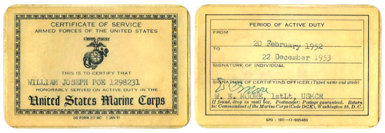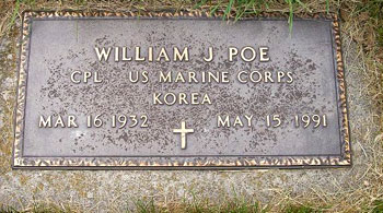 Bill graduated in the June, 1950 North High class. He enlisted in the US Marine Corps on ________ in Des Moines, IA. His service number was 1298231. Bill's next of kin was listed as Joseph C. Poe, 3714 S.W. 6th Street, Des Moines, IA. |