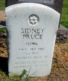 His death was reported as KIA. Sidney was killed in combat on 01/31/44. At the time of his death, his rank was PVT-Private. He was a member of the 168th Infantry, 34th Division, (Red Bull), Iowa.