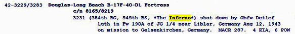 Sergeant. He flew on a B-17F #42-3231 named "The Inferno"