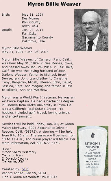 Myron Billie Weaver's 1943 class page is: http://www.ndmhs.com/pages/yearclass1943(2008.65).html. |